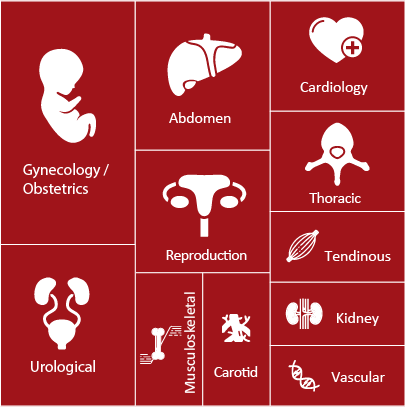 3-Professional solutions: abdominal, gynecology, obstetrics, abdomen, urology, kidney, bladder, vascular, small part, musculoskeletal, peripheral vessels, nerves, neonatal, pediatrics, orthopedics, basic cardiac, ophthalmology, thoracic cavity
